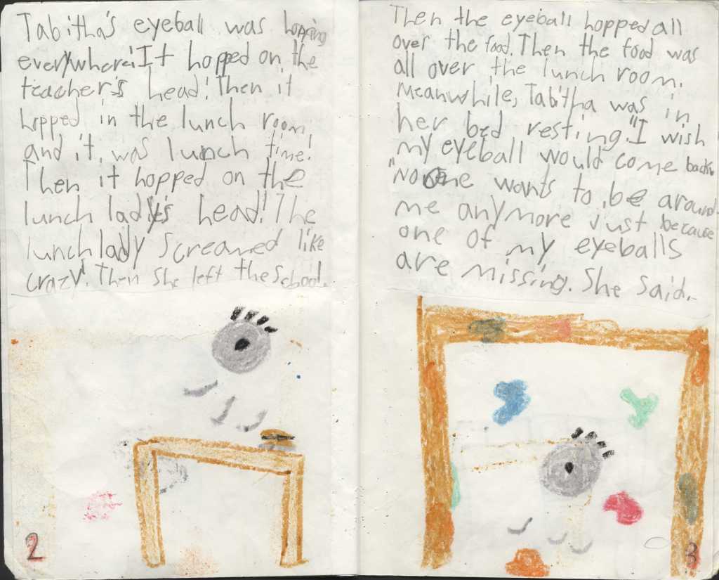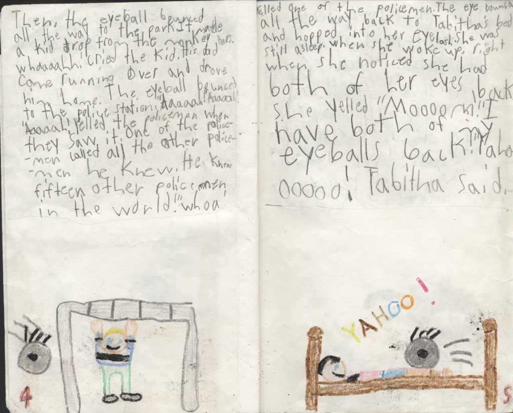 Today I have a real treat for you. From the ancient archives of seven-year-old Alex’s past, I present the first story I ever wrote: The Hoppin’ Eyeball.