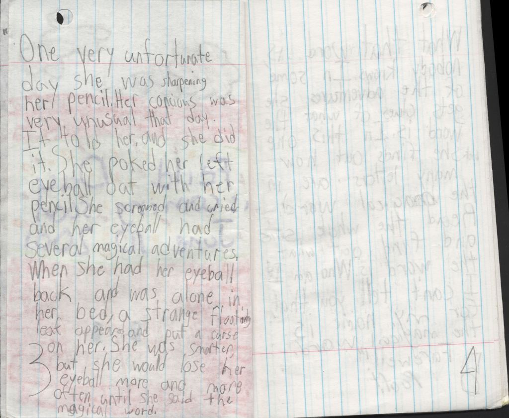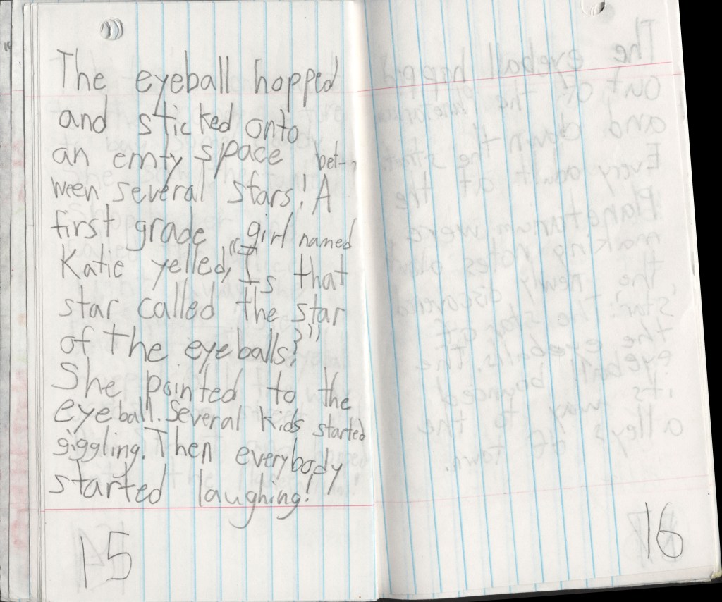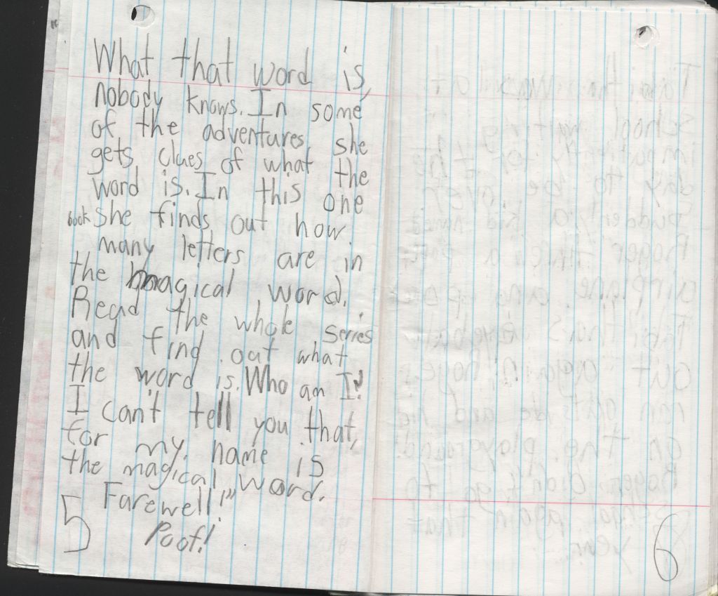 So I didn’t realize this existed at all until I was going through my last box of old things the other day. Eight-year-old me had, by that time, planned an overarching series that would have included probably at least six or seven more sequels.